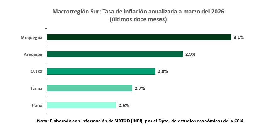 Por su parte, Puno mostró un menor impacto inflacionario. Este comportamiento estaría vinculado a factores como patrones de consumo distintos, una mayor presencia de productos locales y una menor exposición a choques externos. Un ejemplo de ello es el servicio de transporte, cuya inflación mensual se redujo un 0.9% en marzo, contribuyendo a contener el aumento general de precios en la región.