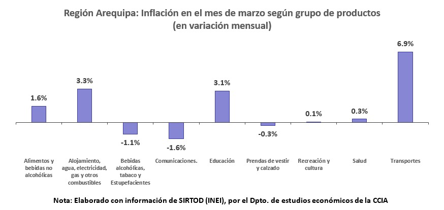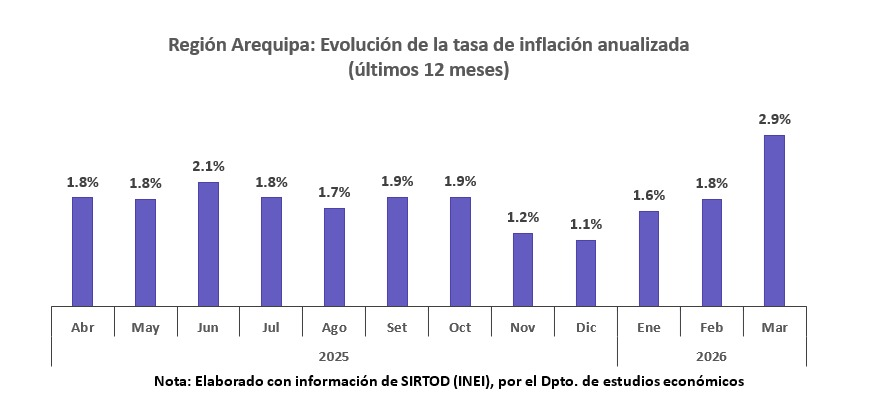 En marzo del presente año, la inflación mensual en Arequipa fue de 1.9%, presentando un incremento mensual superlativo con respecto a los últimos dos años.